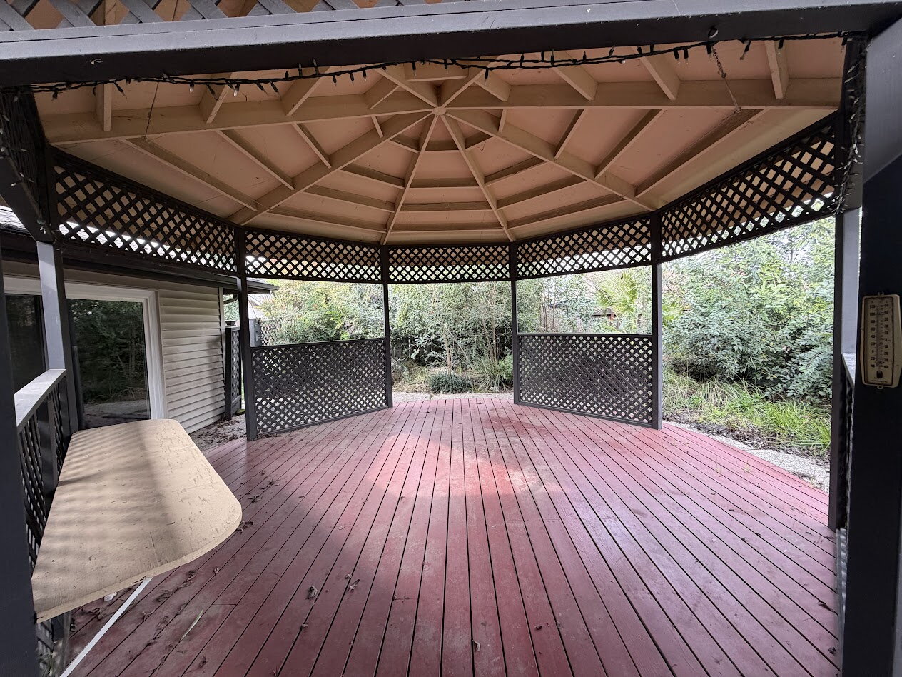Enjoy outdoor living with a covered patio area and charming gazebo — ideal for gatherings, morning coffee, or winding down in the evenings. The 2-car garage provides convenient parking and additional storage space.